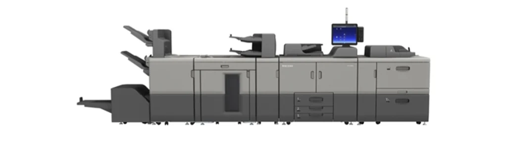 Designed to work as hard as your team does, the Ricoh Pro 8400 Series produces up to 136 pages per minute while taking up minimal floor space. It handles up to 1,000,000 pages per month, making it a powerful performer for manuals, course packs, transactional documents, and other high-volume runs. All while keeping the operation intuitive, thanks to its 17″ Smart Operation Panel with tablet-style functionality.